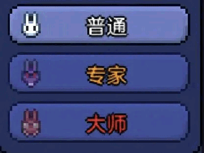 24.在确定了世界大小之后,接下来需要从旅途、普通、专家及大师这四种模式中进行选择。。这个选择会影响怪物的攻击力、血量、防御和AI,连boss的AI都会变。纯新手建议从普通模式开始,一步步挑战到大师。等你通了大师,也许就能拉上小伙伴一起去挑战那个腐化/猩红/大世界的兔子了。