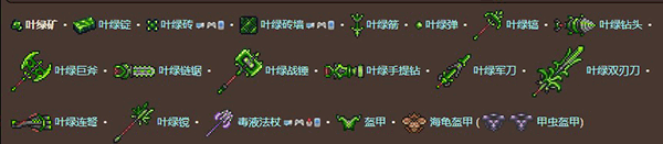 1.这是一种在地下丛林才能找到的矿石,是困难模式(肉山后)的产物,用来做叶绿锭。