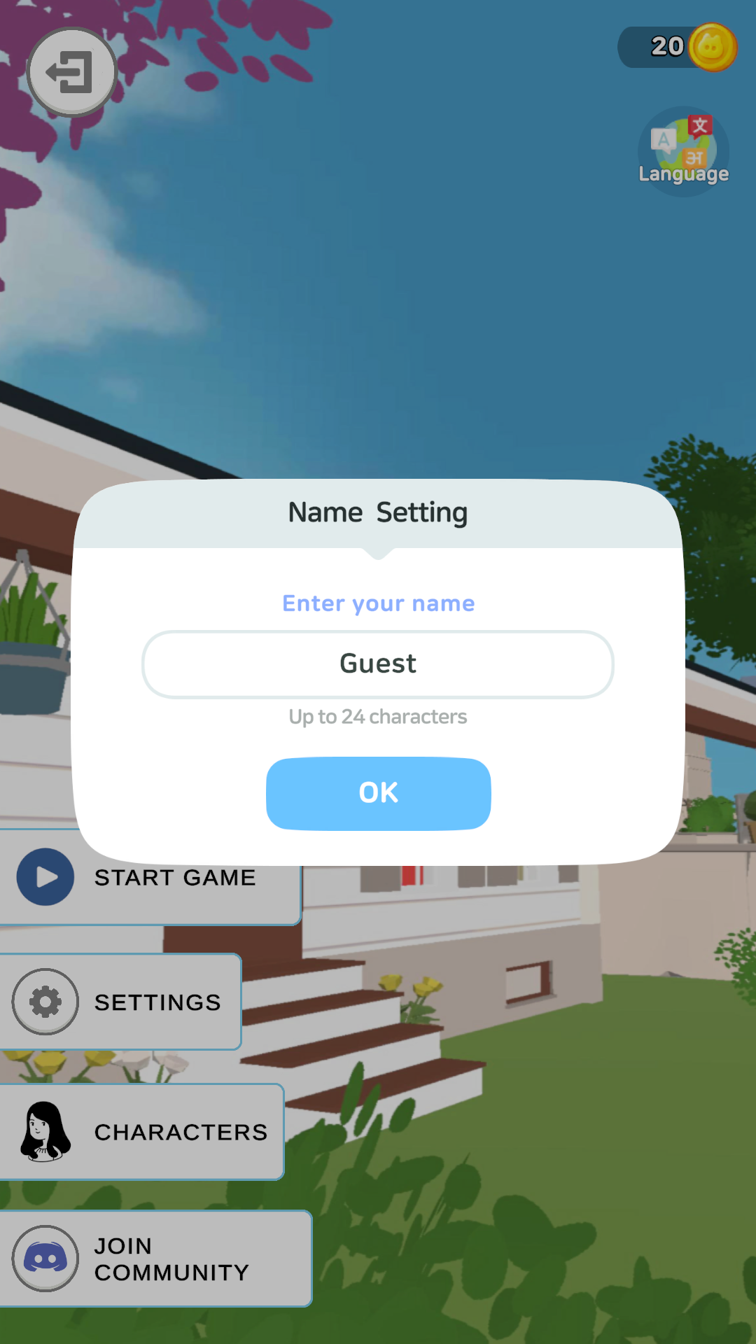 1、在下载并打开游戏,进入游戏后玩家需要给自己起一个名字;