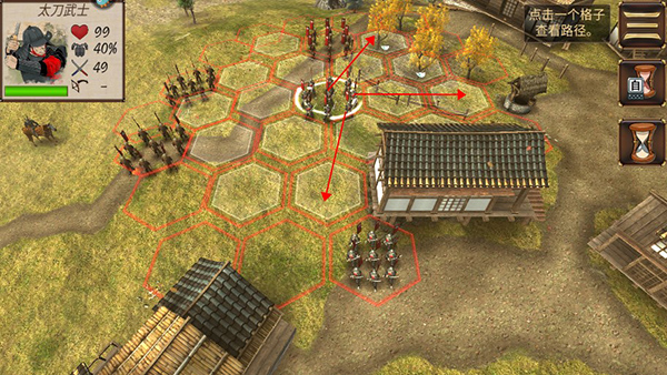 调整部队位置会消耗行动步数。当你的步数用完后,点击右侧的沙漏图标,就会轮到敌方行动。等敌人移动完毕,你又能获得新的步数。就这样慢慢靠近敌人,进入攻击范围后,直接选择敌方部队即可展开攻击。