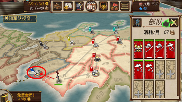 1、想轻松上手?我给你推荐几个亲测好用的氏族:武田、北条和斋藤。开局后,建议先把系统给的初始武将解雇,换一个有“减少军费开支”技能的新武将。因为随着等级提高,部队的粮食消耗会越来越大,后期一支满编部队一个月光军费就得花掉280左右。前期粮食紧张,有个省粮的将领能让开局顺畅不少,当然,这只是个建议,你也可以按自己的想法来。