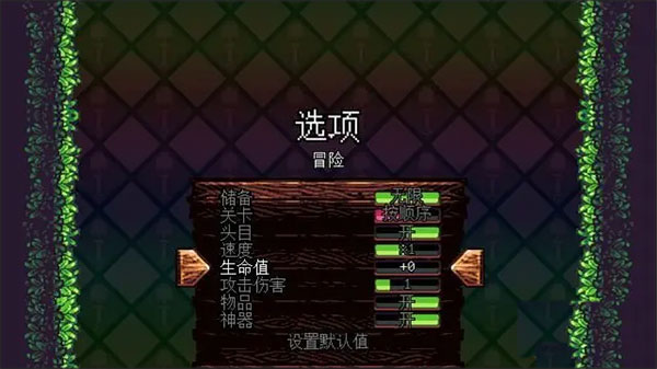 4、选项界面能调各种东西,重点是冒险设置里的“储备”选项。这玩意儿就是你的命,默认是1条,挂了就得从头再来。刚上手的建议调成无限或者多几条命,不然真能被劝退。讲真,这默认设置对新手太不友好了。