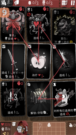 2、这游戏的核心规则记住了:每回合你手上会发一堆牌,你必须从中选至少两张,点一下就连起来,规划出一条行动路线。