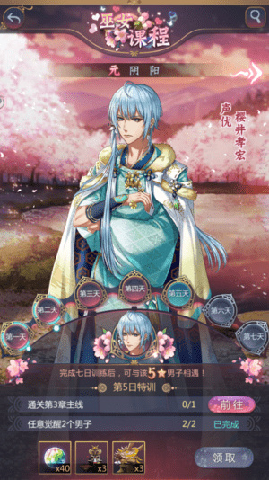 巫女课程:专门给萌新准备的福利。跟着做完7天任务,直接送一个五星男子,算是前期的强力打手了。