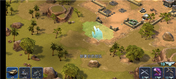 4、等对面的防御工事差不多瘫痪了,就可以开始下兵了。看下面这张截图,兵就从屏幕下方拖上去。