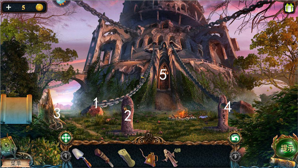 8、图中1处获得锤子;2处获得线索五个世界的堡垒,左入口到达生命之湖,点击人鱼触发剧情得到提示。