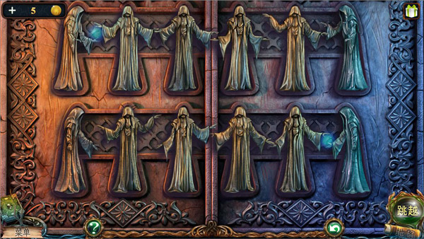 21、点开塔楼大门,放入8个和尚雕塑,调换和尚雕塑使他们的手形成能量链(如下图),完成后大门打开。