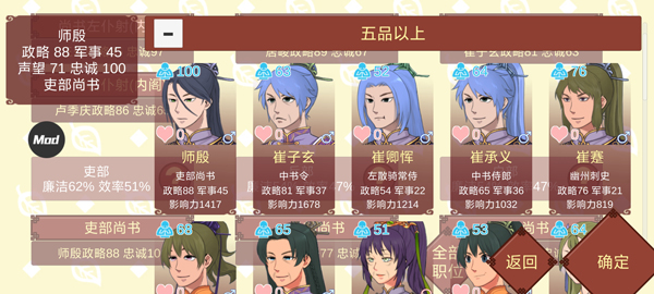 3、政略会随任职提升,但需筛选可用人才(注意世家拉拢)