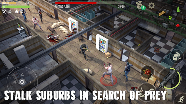 捕食日(PreyDay:ZombieSurvival)是一款丧尸题材的动作射击生存冒险类手游,在游戏需要通过不断的收集食物和制作出各种武器来对抗入侵的丧尸们,在探索的过程必须要小心丧尸,不能让自己变成丧尸,逃离被感染的地狱并找到解药拯救世界。