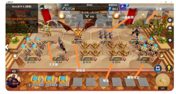 (1)做完熔岩龙的任务,或者直接上个人族牧师(记得放熔岩龙右边),就能触发联合效果,全员数量暴涨。