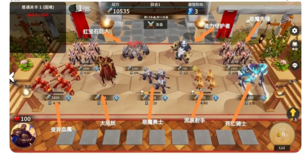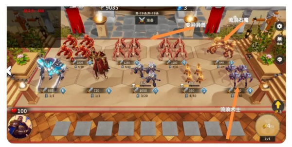 (提醒一下,恶魔勇士和流浪射手别合金,其他的能金就金。死亡骑士、大巫妖和石魔优先度最高。站位记得把流浪术士保护好)