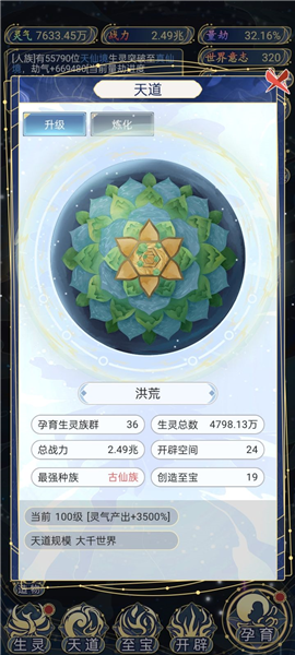 从“小世界”升级到“大千世界”都需要消耗“世界意志”。最快的来源就是吞噬破碎世界,这就得用到“空间跃进”功能。但这玩意儿有冷却时间,老油条都知道,直接改手机系统时间就能刷新CD。个人建议别在小世界一直刷,战力堆到4.5亿左右,直接晋升大世界。大世界吞一个给4个意志,攒够390个直接飞升大千世界,效率最高。
