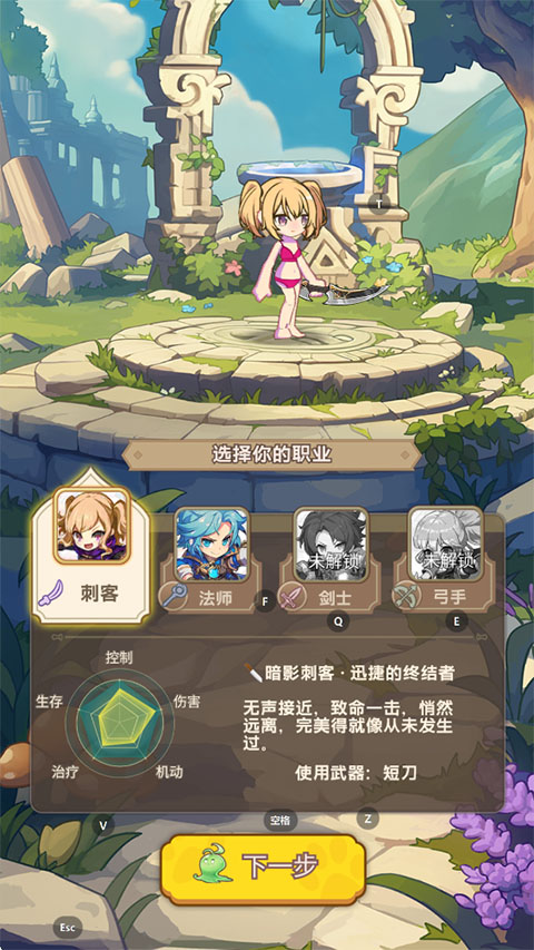 1、刚进游戏,先从这几个职业里挑个你顺眼的开局。大家看下面这张截图,就这几个可选。