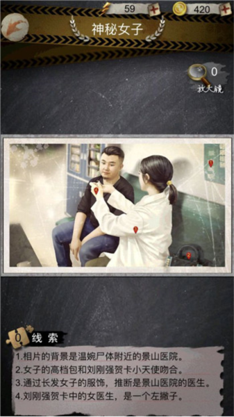 4、图片可以用两根手指头划开,或者双击放大,这样能看得更仔细,犄角旮旯里的线索就不容易漏掉了。