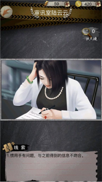 10、线索收集得差不多了,回到审讯室跟陆云云对质,会发现她的惯用手有问题,跟之前掌握的情报对不上。