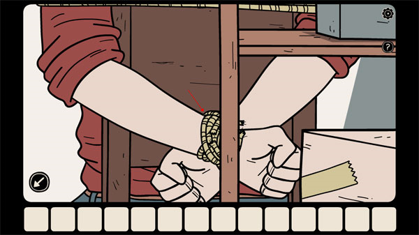 1、开局你就是个粽子,被捆得结结实实的。啥也别想,先疯狂点击自己,把绳子磨断再说。