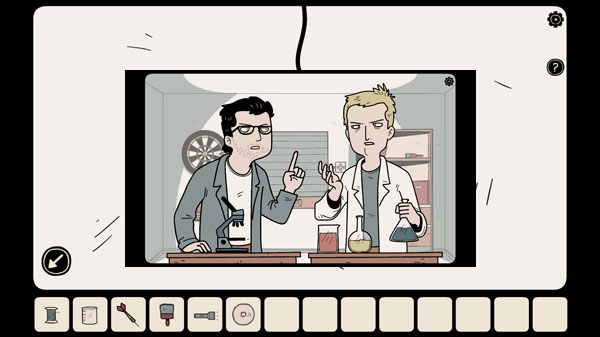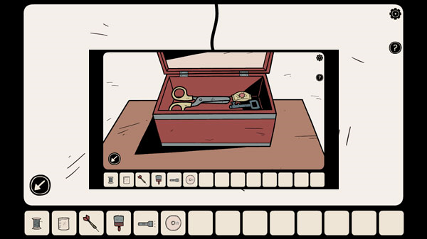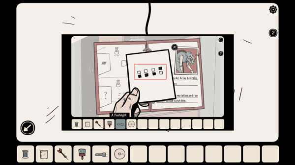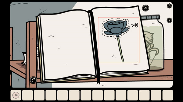 3、抬头看书架,有本书不对劲。你得找到剪刀,把其中一页给剪开。