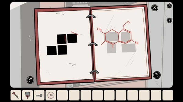 6、显微镜下面的柜子也别放过,能摸出手电筒和一块写着化学公式的镜片。