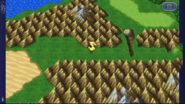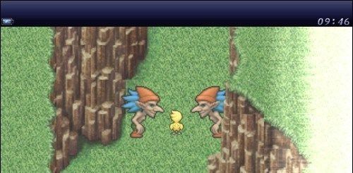 5、返回世界地图后,先向左再往上走,会进入一个峡谷地带。在这里会有一段剧情发生,你的陆行鸟伙伴波可会突然停下脚步,把主角从背上甩了出去。