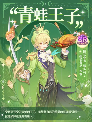 这家伙擅长的是西餐,但工作岗位是服务员。技能是加移速,跑得快,端盘子效率高。