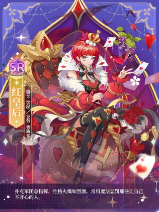 红皇后,专门搞饮品的,职业是表演者。她的技能有点意思,表演的时候能让青年顾客多掏钱,算是特定增益。