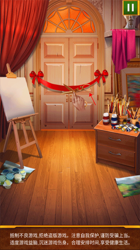 开局白给关,提示都怼脸上了,用剪刀把红丝带咔嚓了,门就开了。