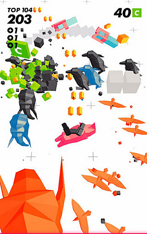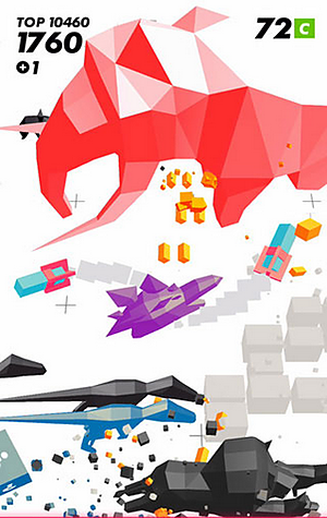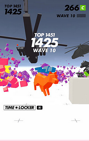至于操作,压根不用担心。角色是全程自动开火的,所以你唯一要做的就是控制走位。在屏幕上上下左右滑动就行,简单粗暴。前面提到的C币可以用来换新角色,一共三种可选。每个角色的攻击频率和范围都不一样,但都有使用次数限制,用完三次就得换回初始角色,或者继续花钱买。个人感觉,那个长得像无人机的3号角色最好用,不吹不黑,火力和范围都挺给力。