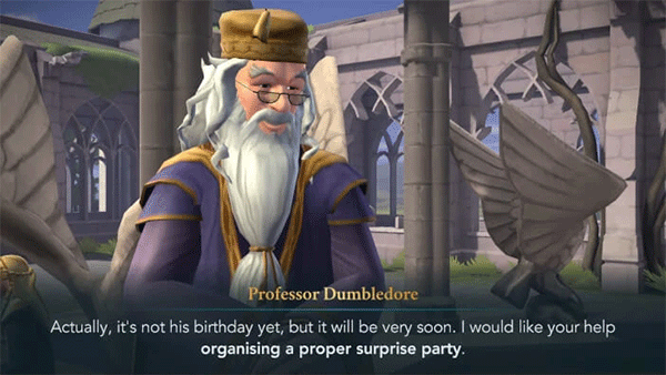 2、邓布利多之所以选择你,是因为他已经对你的热情和创造力印象深刻,而海格也对你产生了好感。你会知道海格最近失去了他最喜欢的宠物之一。邓布利多将继续解释为什么海格值得举办生日派对,他说海格非常重视自己,并为霍格沃茨的每个人做了很多帮助。然后他会问你海格想在他的生日派对上吃什么。你有三个选择来回应。