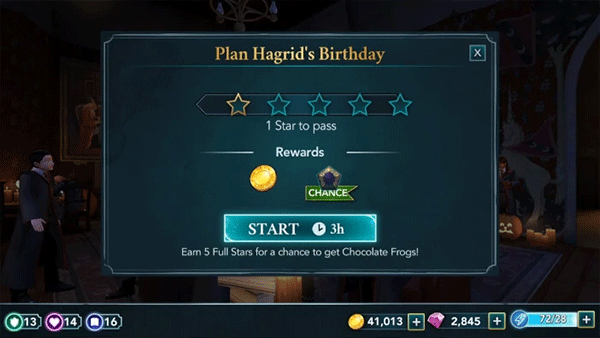 1、本演练将从一名二年级学生的角度介绍游戏。由于一年级及以上的学生可以参加冒险活动,因此根据你当前的主要故事进度,某些任务的星级和属性要求可能会有所不同。一旦你到了那里,你就可以和一些学生互动了。点击他们上方的演讲气泡,看看他们要对你说什么。之后,邓布利多会告诉你海格的生日很快就到了,他希望你帮他组织一个惊喜派对。