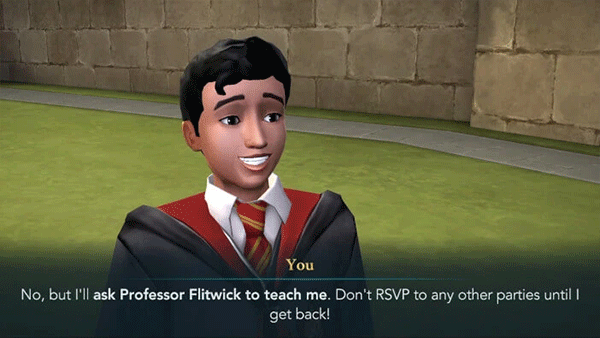 现在问题仍然存在,弗立维教授会教你那个咒语吗?你还得去邀请谁来参加派对?还有哪些准备工作没做?咱们下个部分接着说!