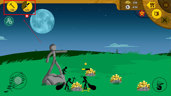 3、点击右上方,可以创造专门挖矿和进攻的士兵。
