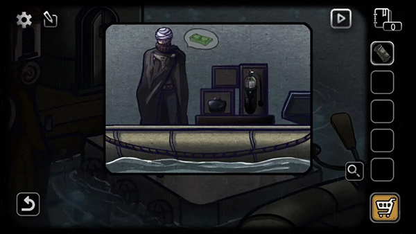 11、点击救生筏,将钞票交给商人,获得潜水设备。