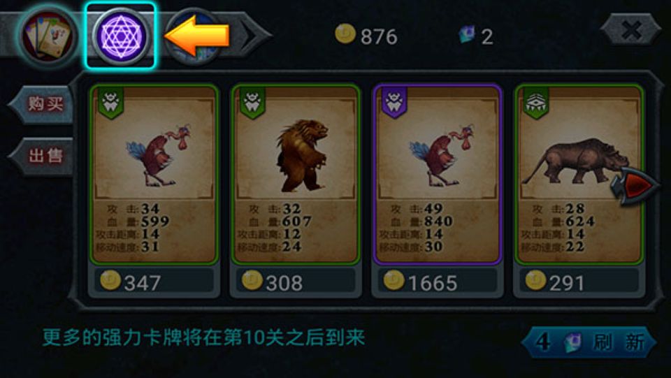 3、进对局前会让你选卡,把你觉得牛的猛兽都给带上。