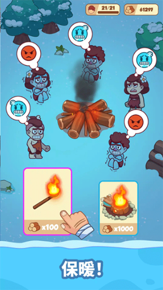 冰河时代生存大亨是一款冰雪生存题材模拟游戏,故事放在寒冷的远古时期,带着一个小部落在大雪天里慢慢活下去,平时要安排找食物、收集水源和搭建住处,还要时刻留意每个人的身体情况,天气太冷的时候,保暖不够就很容易撑不住,食物不够也会影响生存,后面人数慢慢变多,事情也会越来越多,从一个小营地一点点发展成能在冰天雪地里站稳脚步的大部落。