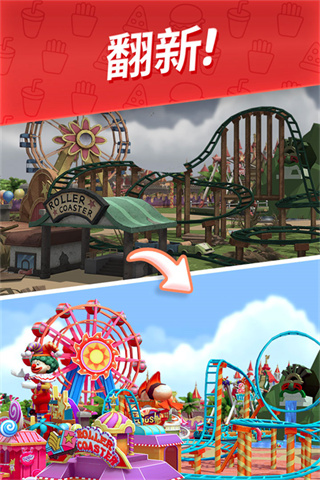 进入小镇后,会成为一名餐厅经营者,在不同地方开设美食店铺,而小镇里有很多主题餐厅,每家店都有不同菜品可以制作和解锁,需要完成各种关卡目标,获得奖励,再用来升级餐厅、翻新建筑,让店铺变得更加完善。