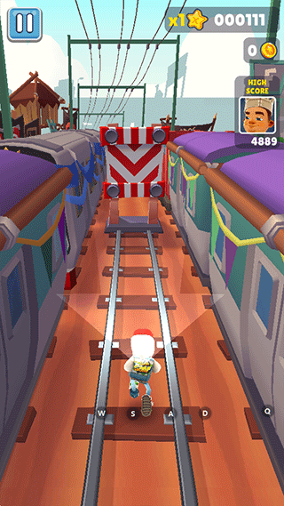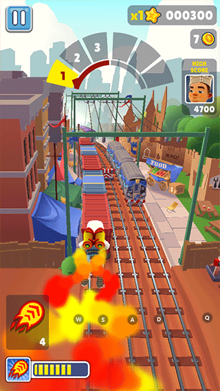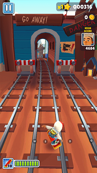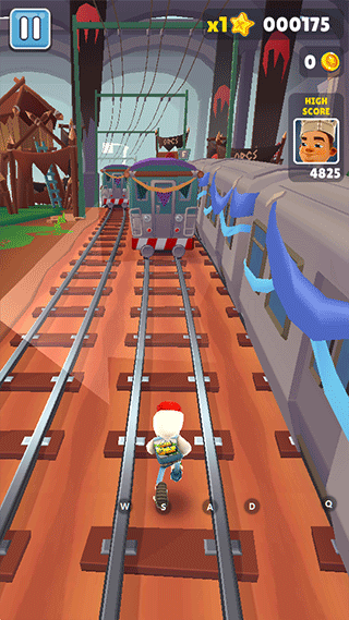 4、轨道上有火车冲你开过来的时候,别硬刚,赶紧向左或者向右滑,换条道跑就完事了。