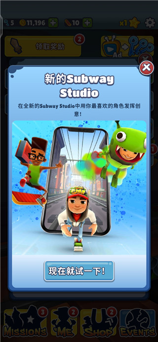 2、加了个叫“Subway Studio”的新功能,我刚上手实测了一下,入口就在角色选择那个页面里。大家看下面这张截图,点进去就行。