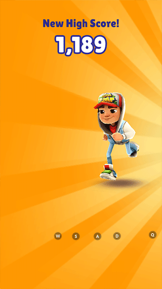 5、快速双击屏幕就能踩上滑板,这玩意儿有持续时间的。没滑板的时候撞一下就直接被抓了,游戏结束。但只要脚下有板,就等于多了一条命,撞一下只会把滑板撞碎,人还能继续跑。