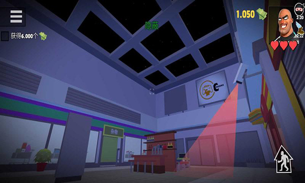 2、在偷窃的过程中需要避开,保安、机器人巡逻、摄像头、报警系统,可以躲进垃圾桶或草丛;
