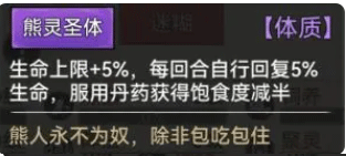 体质类:也分金木水火土五行灵体, 还有熊灵体之类的特殊体质。
