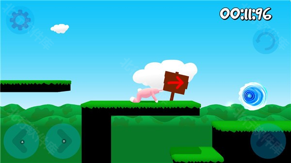 3、进了关卡,看下面这张截图,左边那个虚拟摇杆是控制兔子前后滚的,右下角那个大圆钮就是跳。操作就这么简单,但玩起来可不简单。
