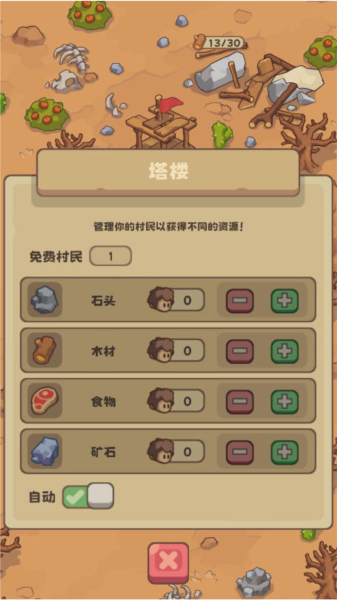4、记得及时给你手下的村民升级,等级高了,他们采集食物、砍木头的效率才会变高。看到截图里这个升级界面没,别忘了点。