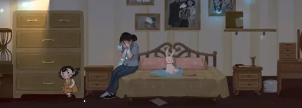 8、从梳妆台爬上去能拿到个兔子玩偶,把兔子放到中间的礼物盒里,又能进到上面的空间。