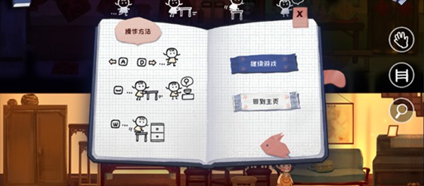 3、然后就正式开始了。大家看下面这张截图,小女孩可以左右走,那个手掌图标是用来推东西的,梯子图标就是爬上爬下,放大镜图标是靠近了有线索提示的时候让你仔细看的。