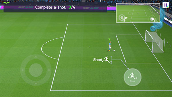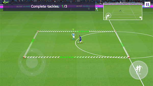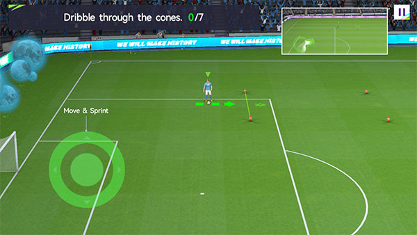2、左手边那个虚拟摇杆,划拉一下就能控制球员带球跑。