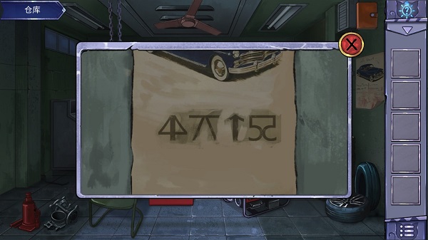 1、开局别瞎点,先看右边墙上贴的那张破纸,上面有一串看着奇怪的符号。仔细辨认一下,其实是几个对称数字,组合起来就是:4715。记下这个,然后去看左边的柜子,点一下进入密码锁的特写,再点一下就能放大操作指针了。