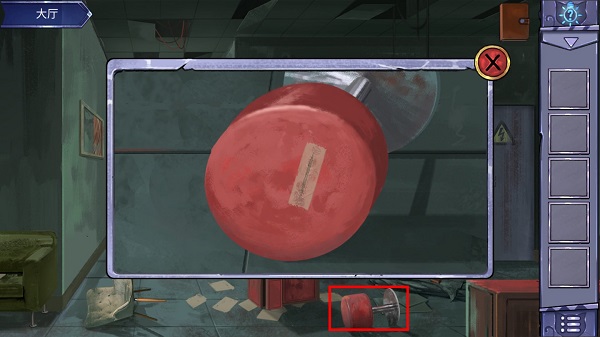 9、进大厅后,先调查地上的椅子,点一下凑近看。把椅子上的胶带撕开,然后疯狂点击裂缝,能从里面掏出一把钥匙。
