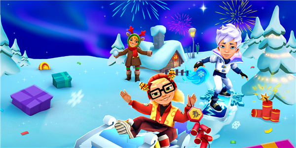 地铁跑酷这回更新的北极版国际服,是给全世界玩家一起嗨的。这次的主角团们直接空降到了北极,别以为北极就只有蓝海和白冰块,游戏里还是给你整了点不一样的风景,跟着跑酷的节奏顺便看看极地风光也算不错。这次北极地图的主推角色叫「姜博」,配的滑板是「姜饼」,听着就很有冬天的感觉。操作上还是老一套,跟神庙逃亡那些跑酷游戏的逻辑一模一样,上滑跳、下滑滚、左右滑换道,躲障碍物和火车,核心玩法就是别让那个暴躁的警察和他的狗逮住。