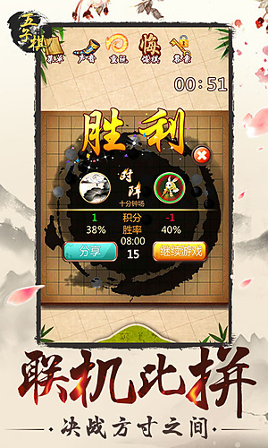 1、模式挺全乎,单机自己玩,联机找人下,还有专门的对战和残局模式,想怎么玩都行,选择困难症估计得纠结一下。