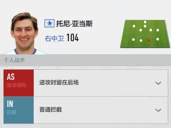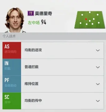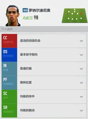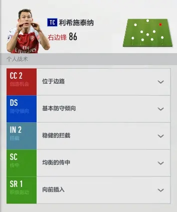 边锋我一般会把CC调成“位于边路”,因为感觉游戏里边锋太喜欢往中路挤了,搞得边路经常没人接应。SR我会调成“向前插入”,这样打起来更顺手。